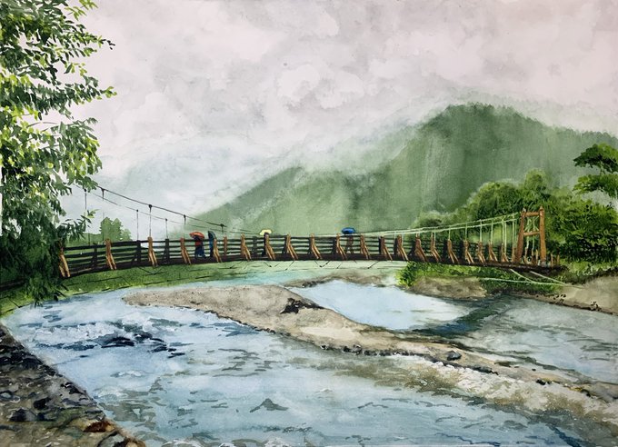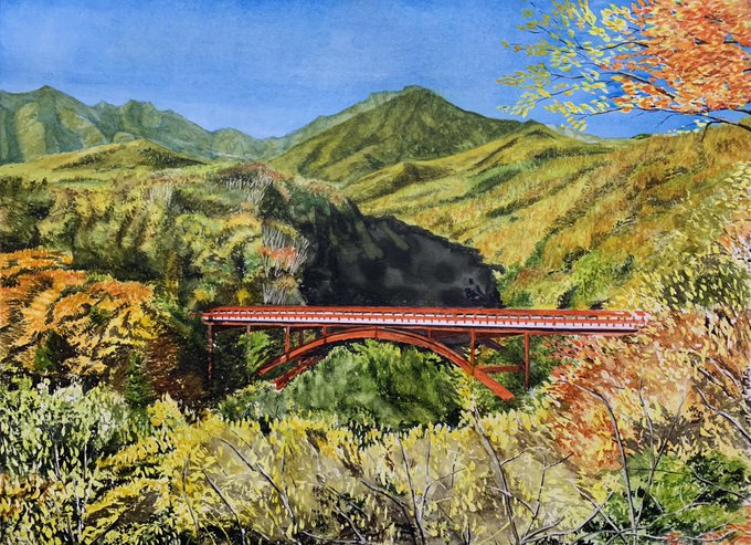 #今月描いた絵を晒そう #透明水彩 #風景画 今月も2枚です。 橋を描くのにはまってます。