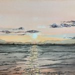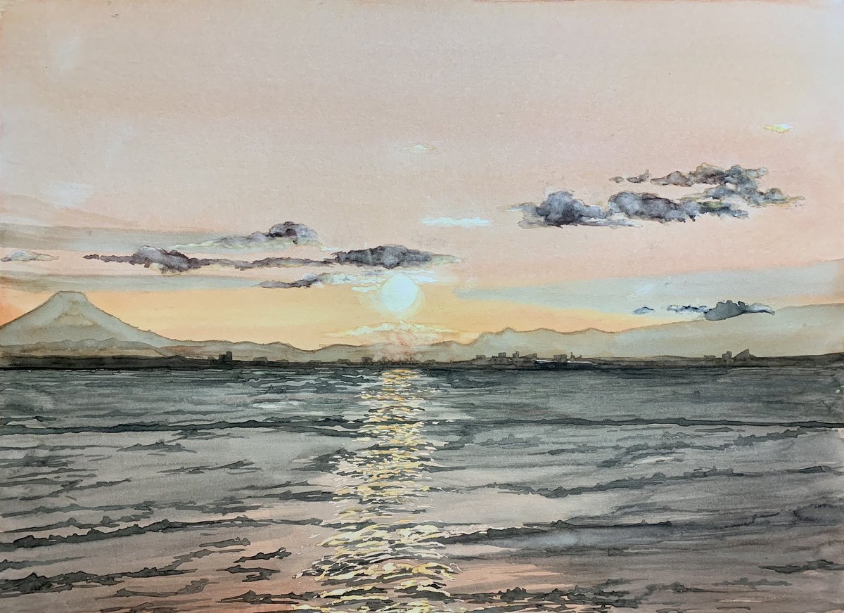 30 373 44 夕焼けの海 #Watercolor #artwork #透明水彩 #芸術の輪 #アトリエの系譜 #海 #江ノ島 21/11/07 07:29