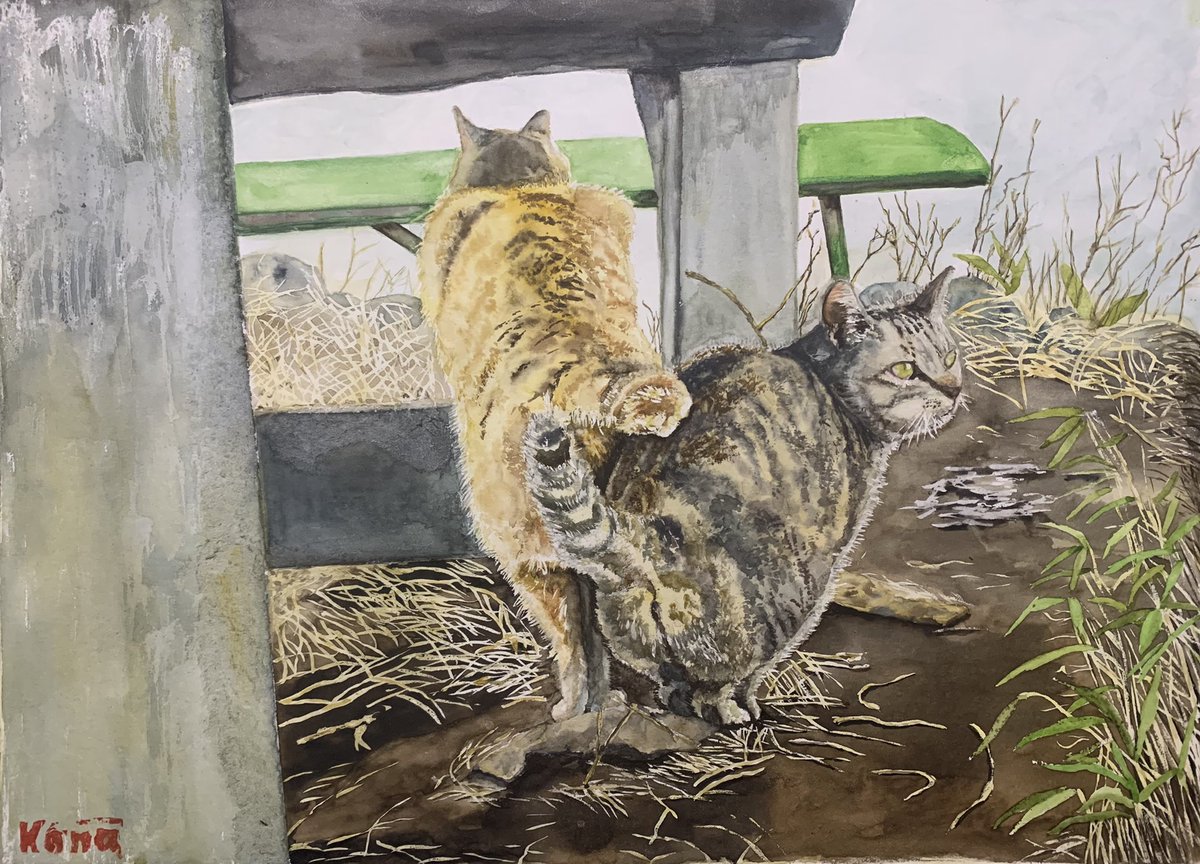 14 124 51 仲良し #Watercolor #透明水彩 #芸術の輪 #アトリエの系譜 #猫 #猫がいる幸せ 22/01/21 21:01