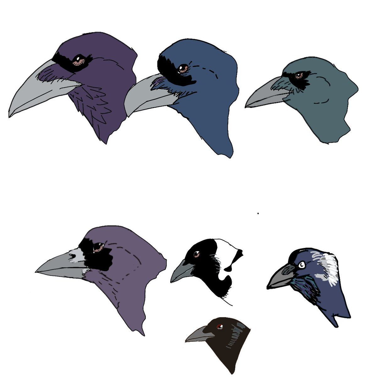日本で見る事ができるカラス属の鳥の顔だけ描いてみたり。スレッド欄に種名載せとく。