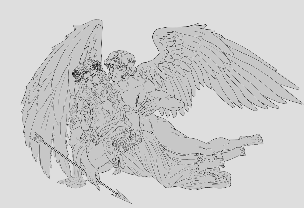 Eros e Psiquê - dia 2 Tema : Mitologia Quem me conhece sabe que não sou de pedir, mas vai dizer que esse não merece um RT seu? #Inktober #inktober2021 #inktobercafecomart #mythology
