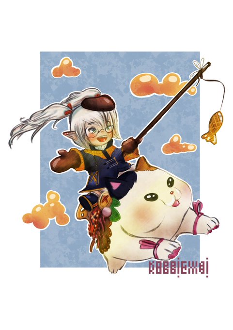 @inktober theme for today is #tempting ; I choose to do a #finalfantasyxiv #fanart ! How do you think #lalafell manage to get #fatcat to fly ? #ffxiv #ff14 #cute #character #illustration #inktober2022