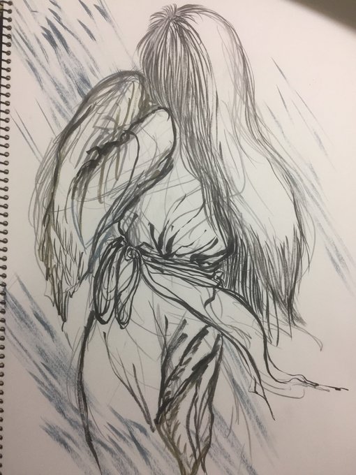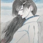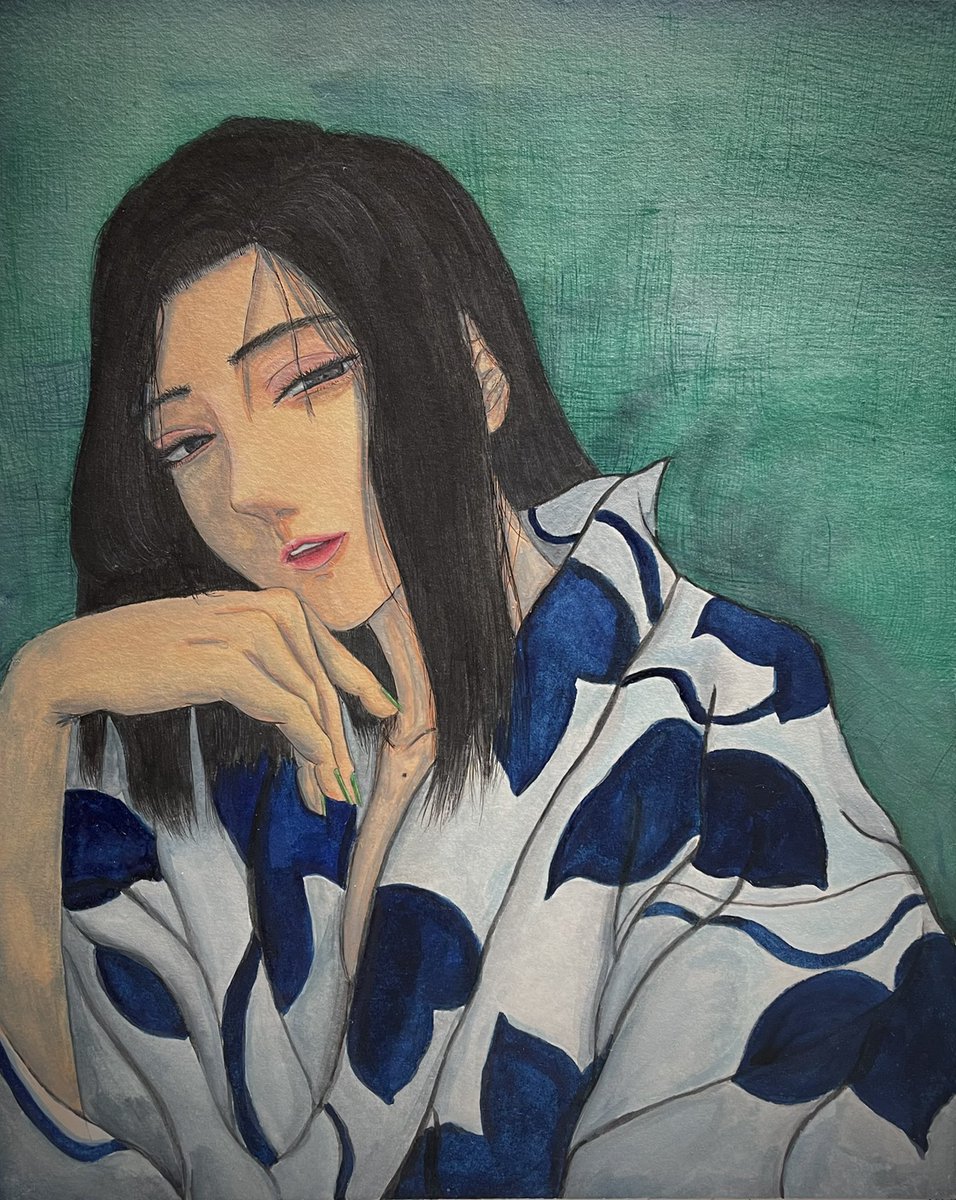 6 15 #作品を載せて自分の作品を知ってもらおう 顔彩と墨で描いてます。髪は一本一本植える気持ちで線を引いてます🙄 22/12/22 23:37