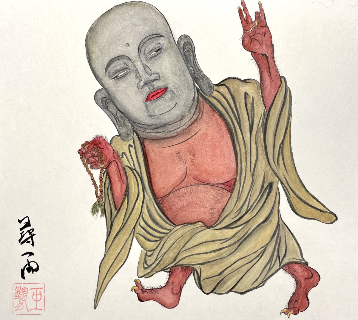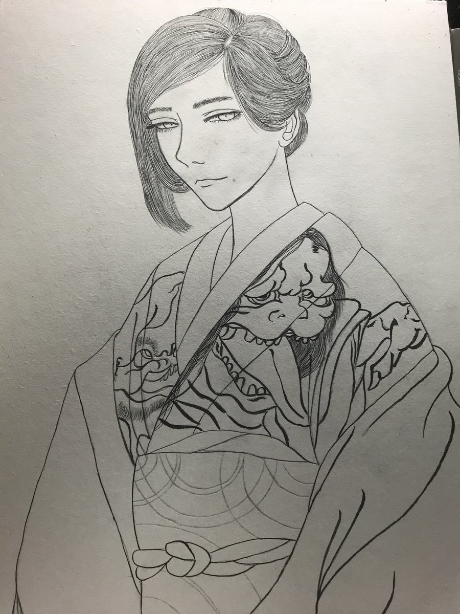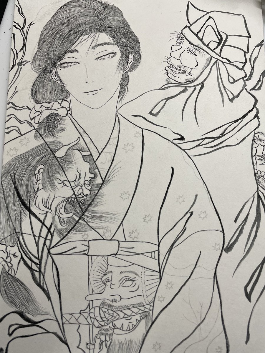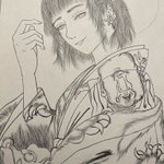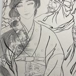 #作品を載せて自分の作品を知ってもらおう 顔彩と墨で描いてます。髪は一本一本植える気持ちで線を引いてます🙄