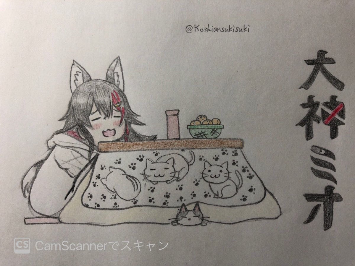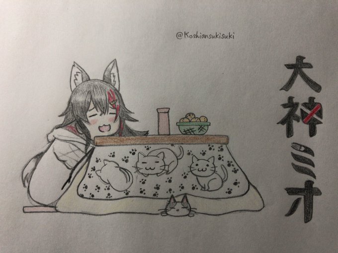 14 56 ミオしゃはタイガ君とコタツで丸くなってて欲しいなっていう絵です。 #みおーん絵 20/11/24 22:52