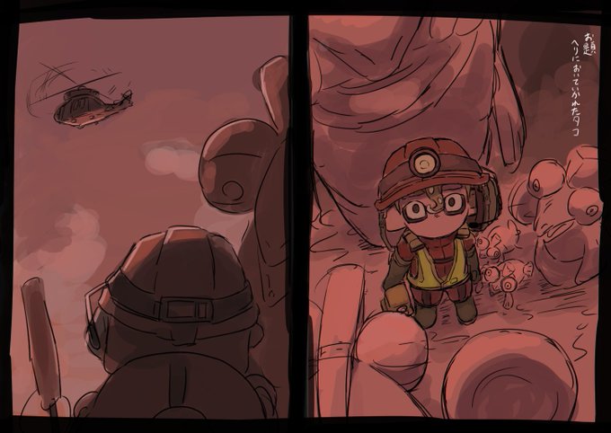 箱からwork's over後にヘリに置いていかれるタコ 描いたあとにお題見返したらロンゲタコ希望だったのかもしれない…そうだったらごめんなさい