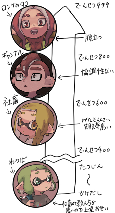 よく描いてるイカタコのランクがどのへんか質問いただいたので簡単に 厳密に決めてるわけではありませんがこの辺のつもりで描いてます