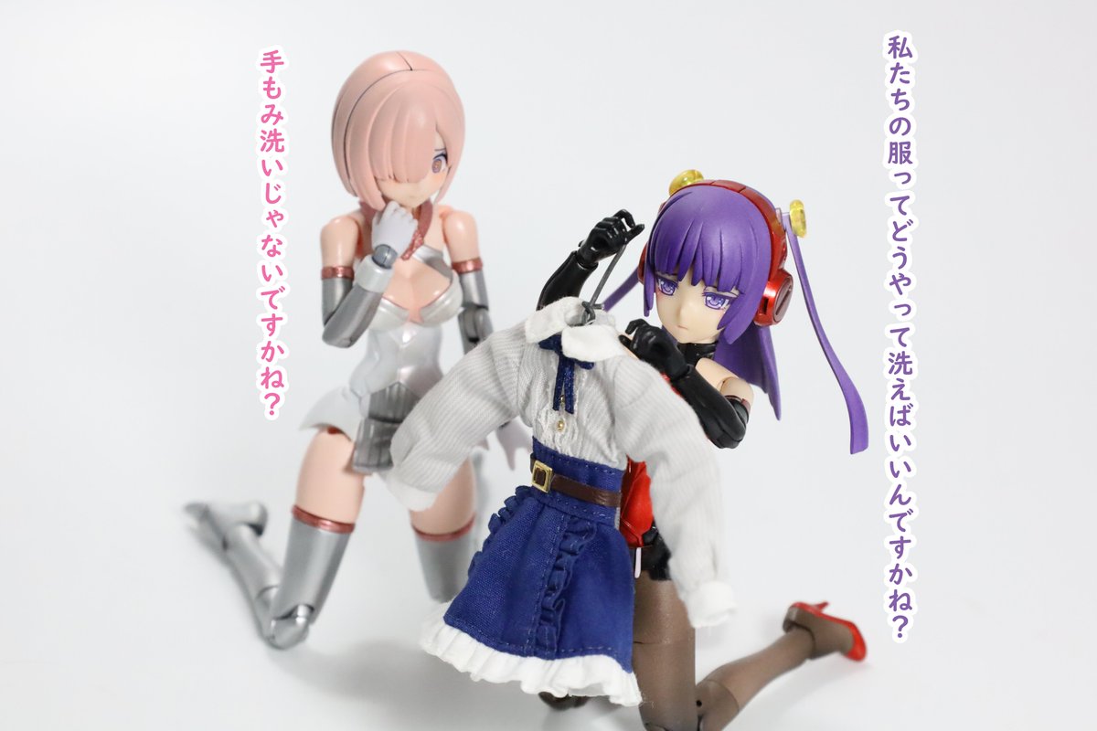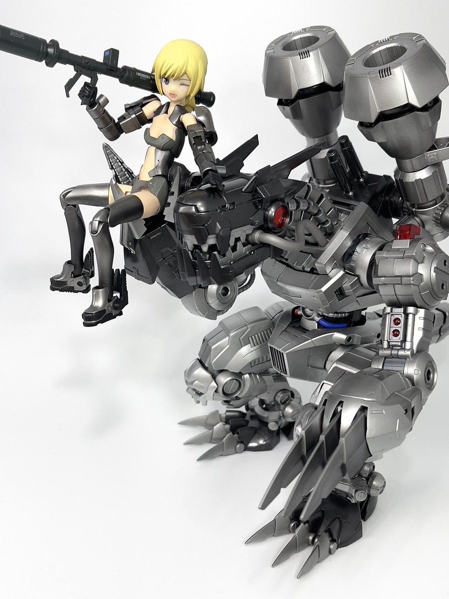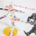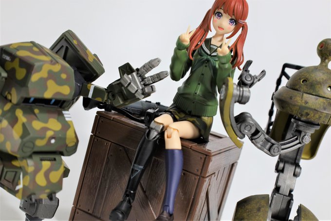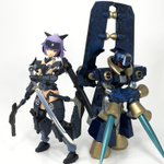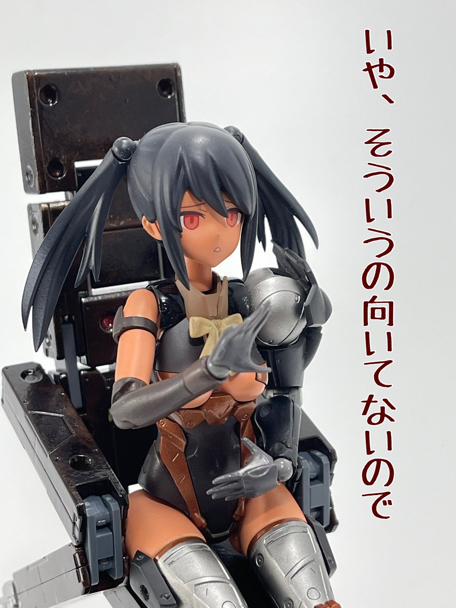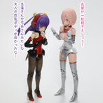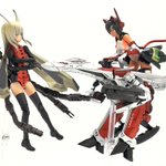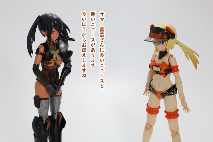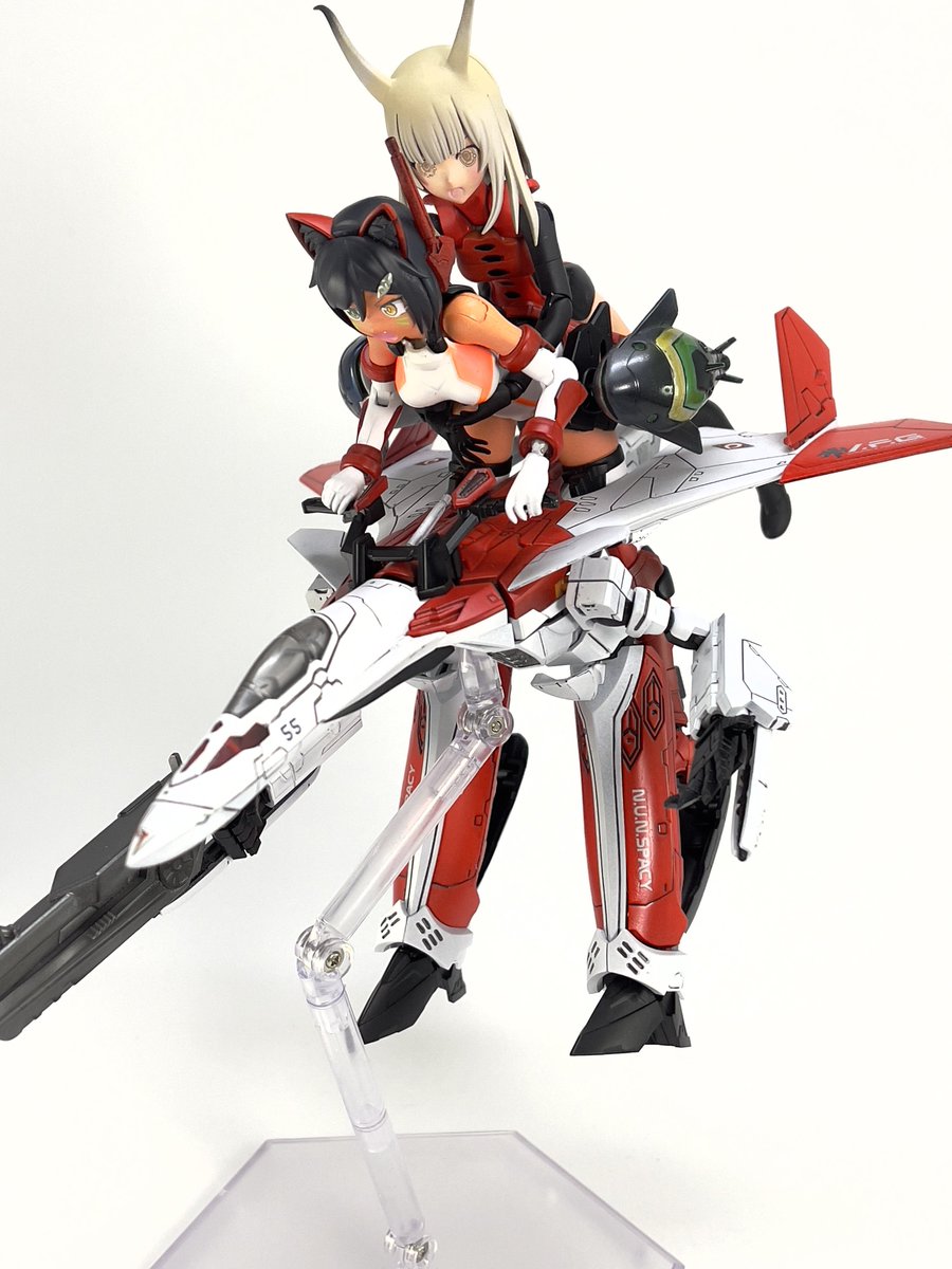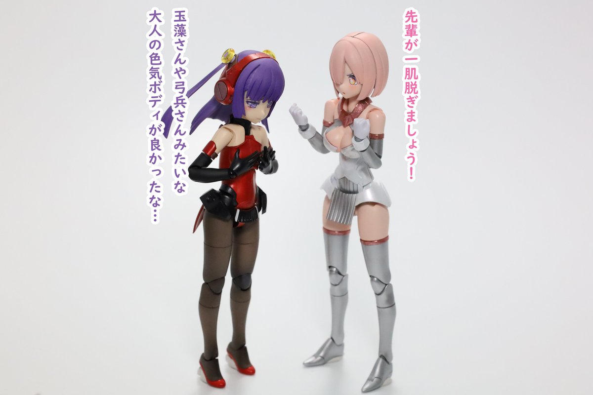 #今月作ったプラモ晒そうぜ クロスジヒトリちゃんとVFガールスクルド 二人乗りさせてわかったのはVFガールはメガミデバイスと比べると足が長い気がする クロスジヒトリがわからなくてググる人はやばい見た目の虫が出てくるから注意