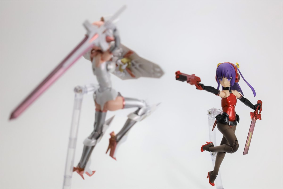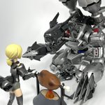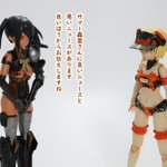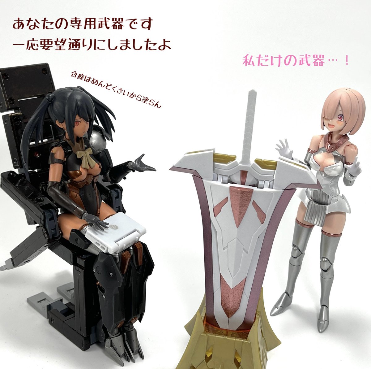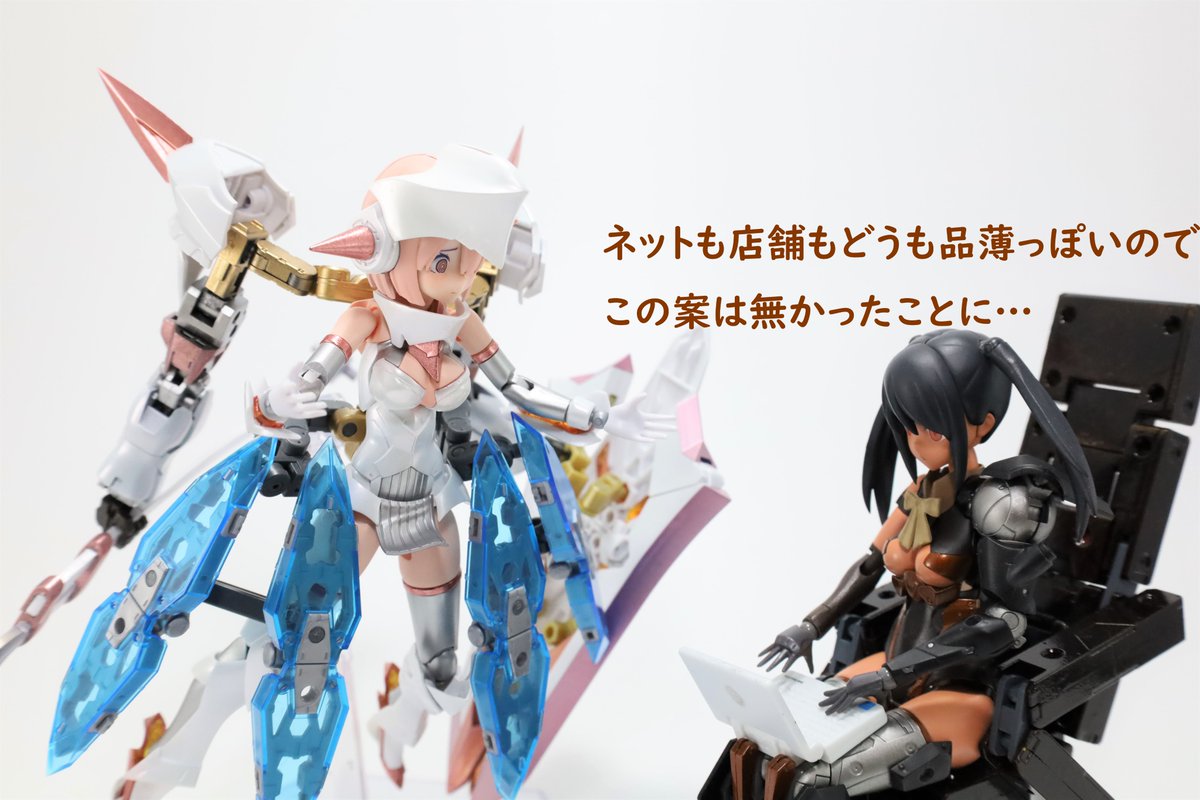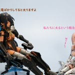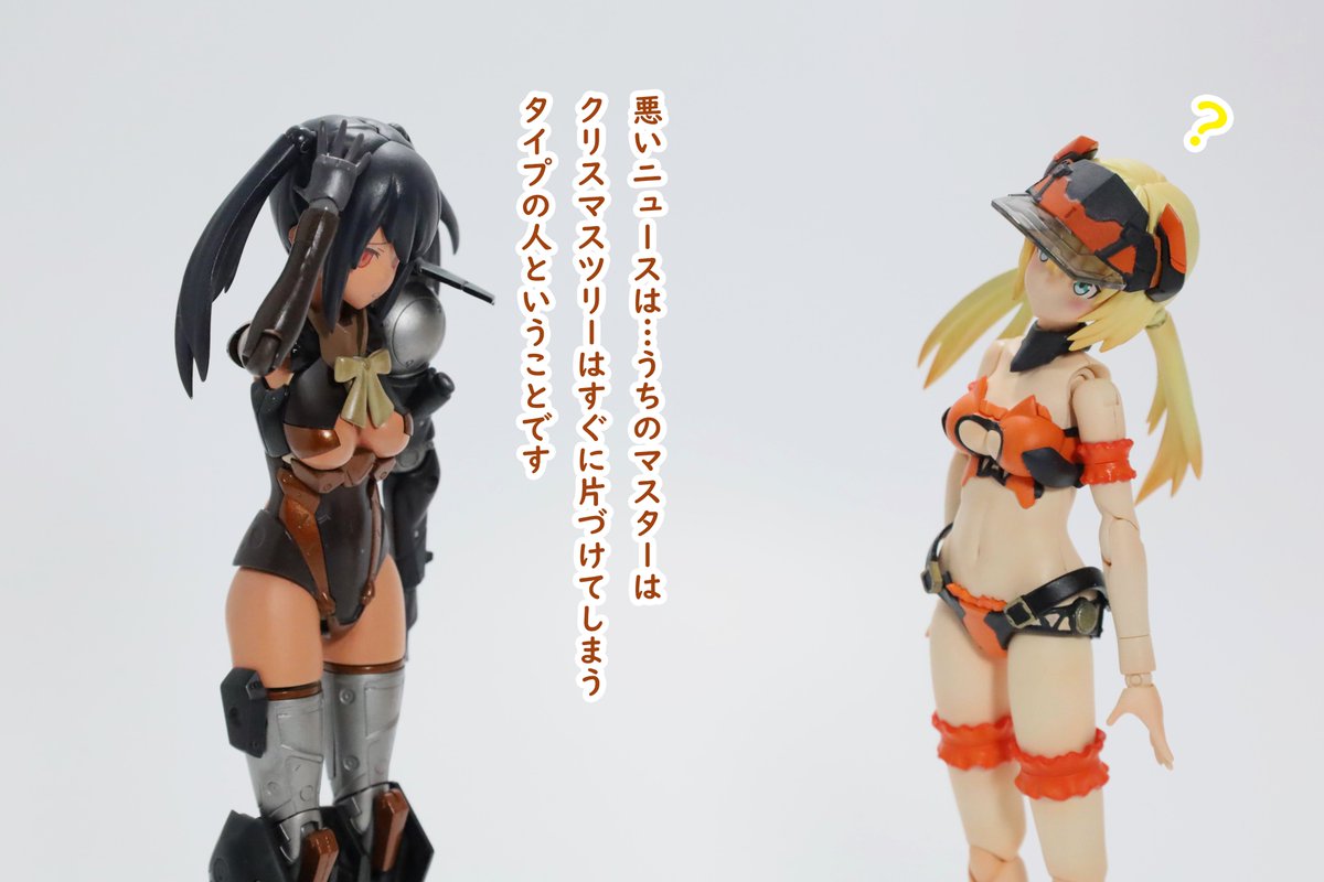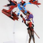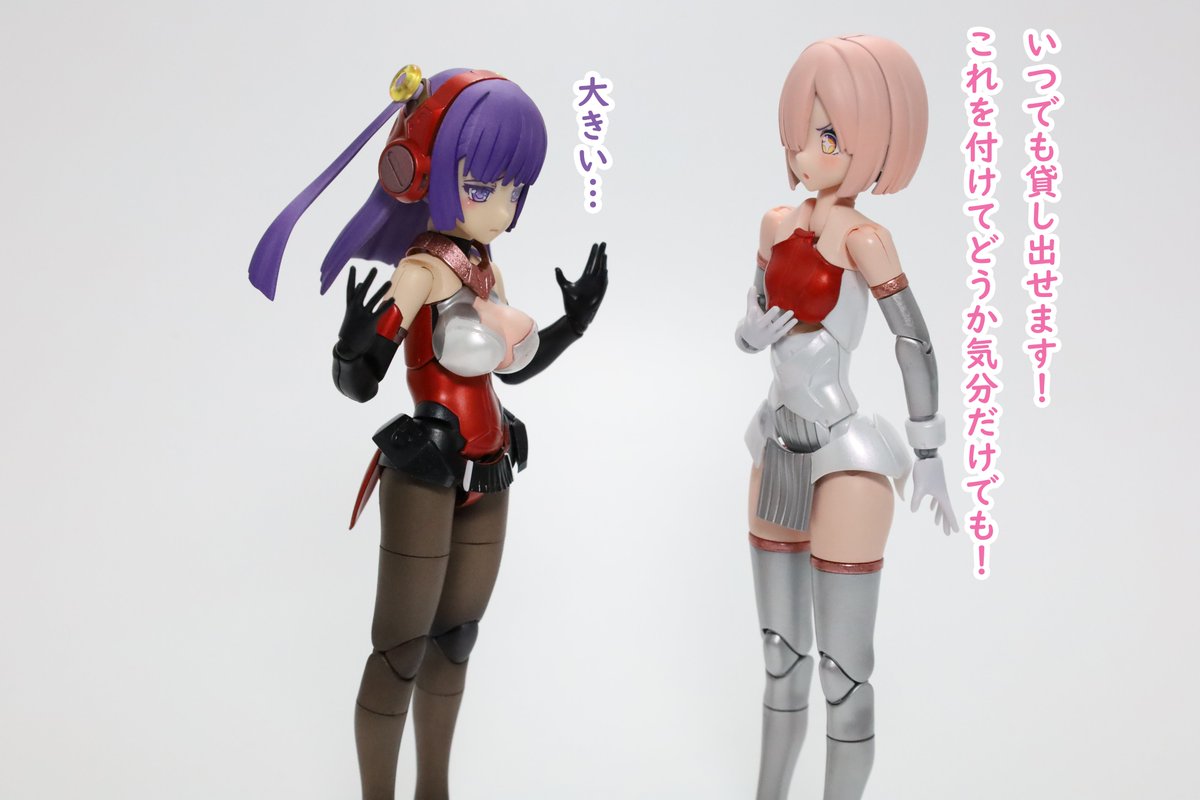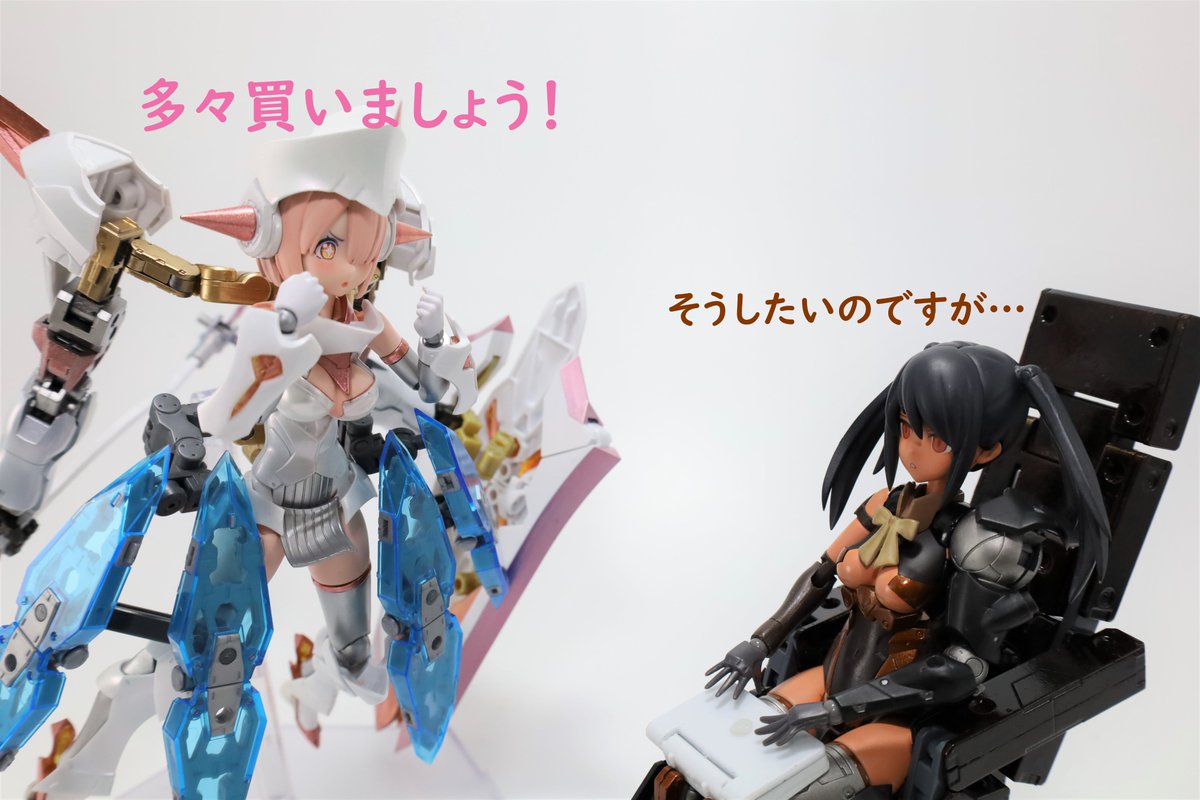 #今月作ったプラモ晒そうぜ クロスジヒトリちゃんとVFガールスクルド 二人乗りさせてわかったのはVFガールはメガミデバイスと比べると足が長い気がする クロスジヒトリがわからなくてググる人はやばい見た目の虫が出てくるから注意