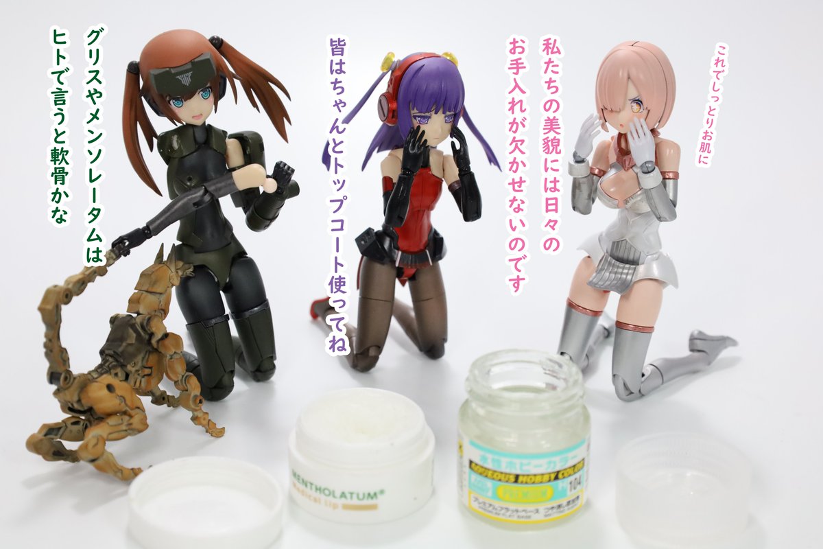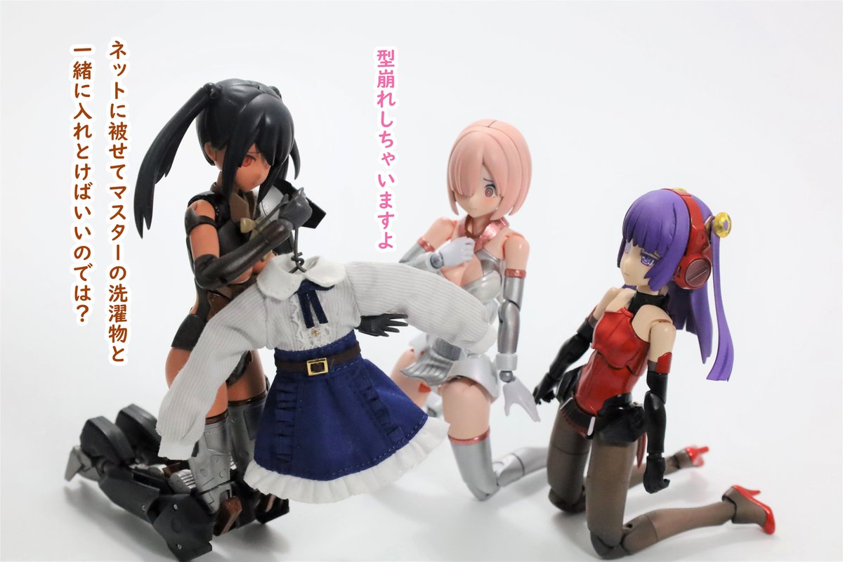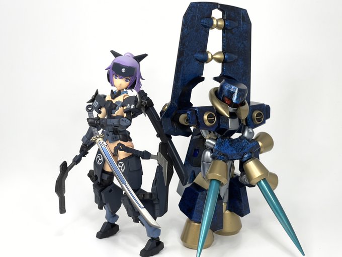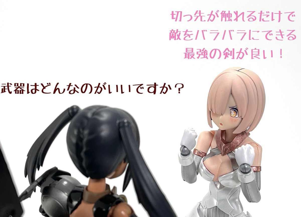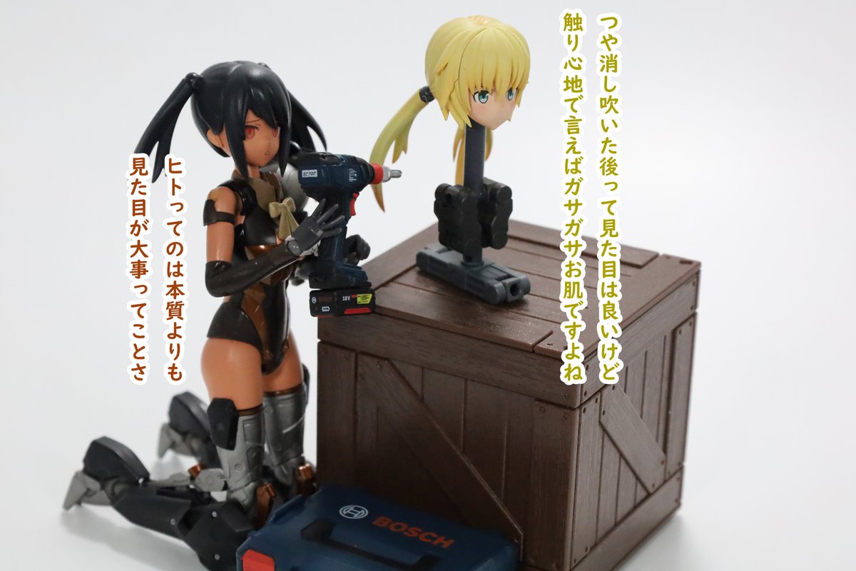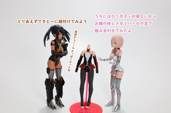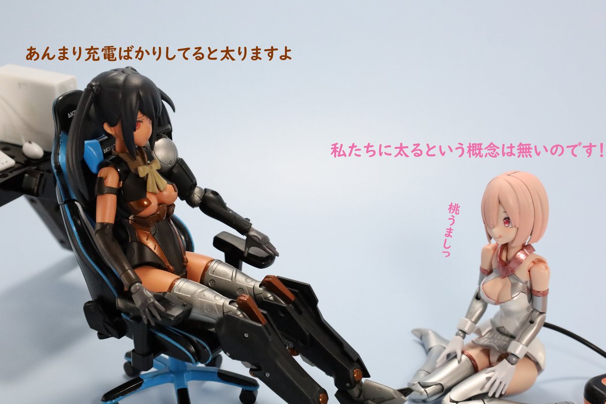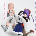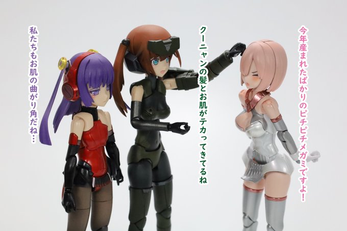 #今月作ったプラモ晒そうぜ クロスジヒトリちゃんとVFガールスクルド 二人乗りさせてわかったのはVFガールはメガミデバイスと比べると足が長い気がする クロスジヒトリがわからなくてググる人はやばい見た目の虫が出てくるから注意
