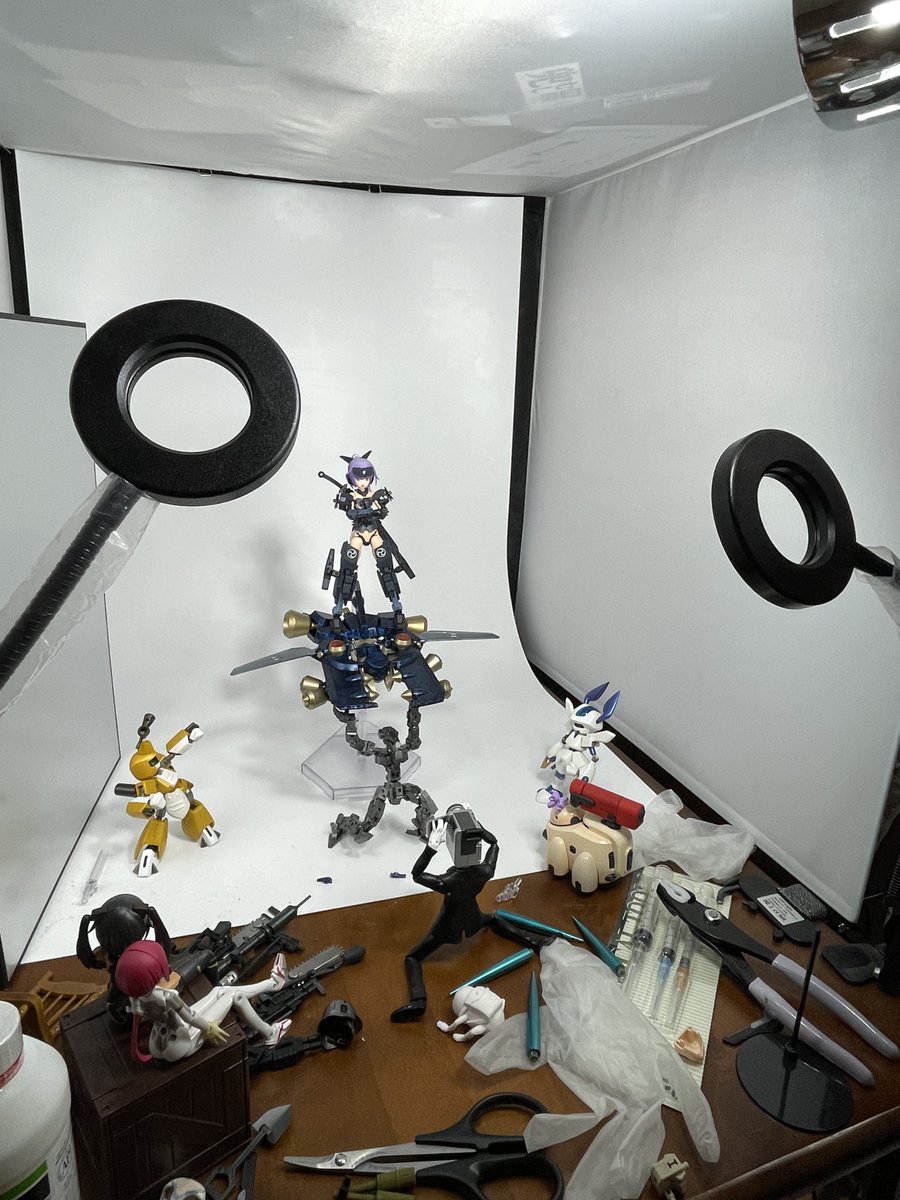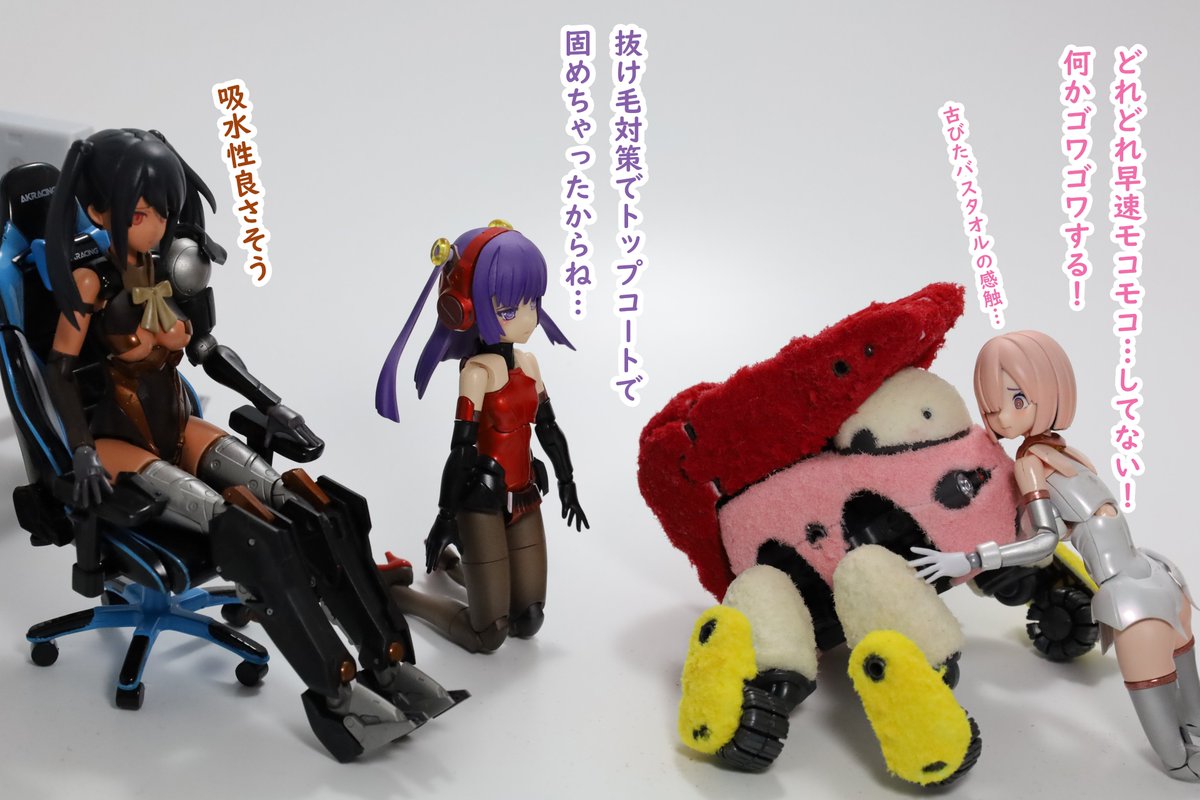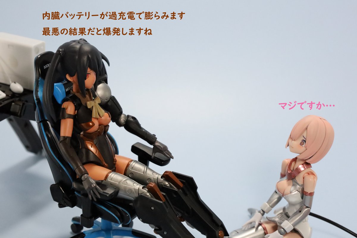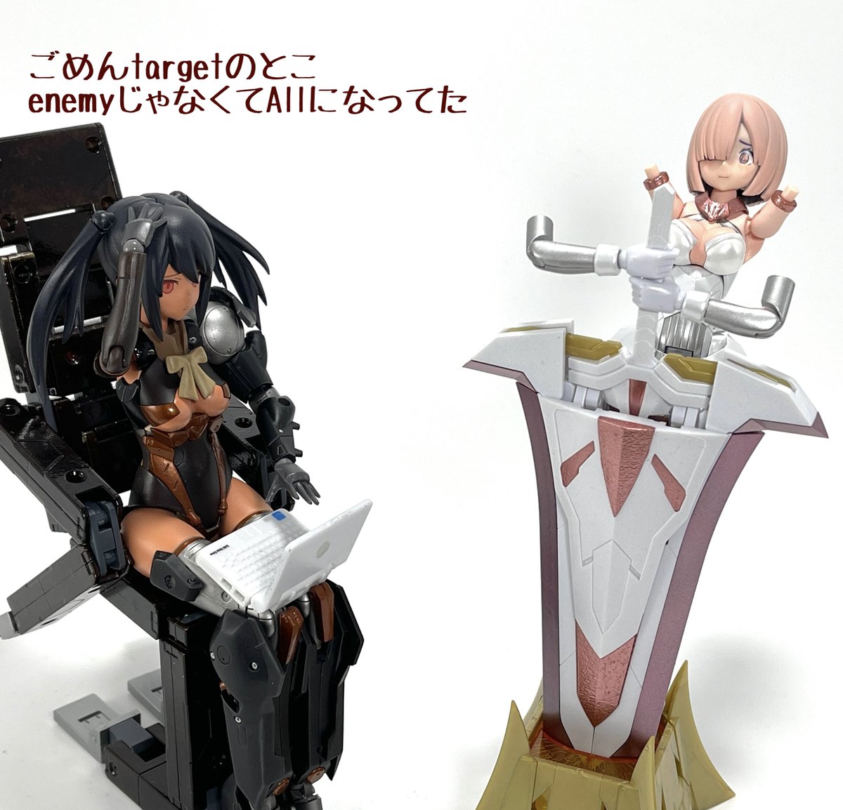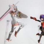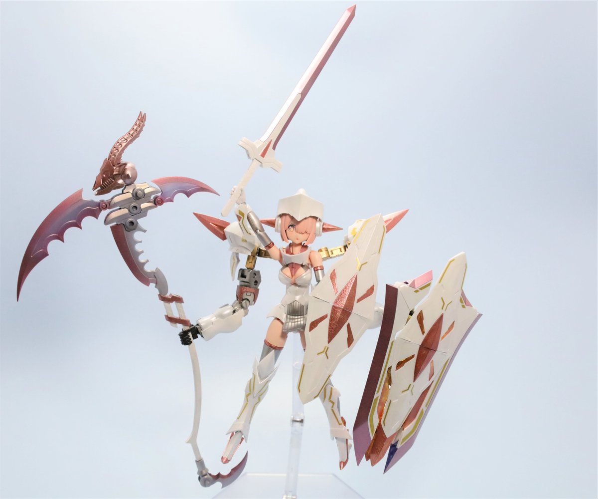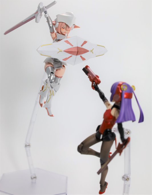 #今月作ったプラモ晒そうぜ クロスジヒトリちゃんとVFガールスクルド 二人乗りさせてわかったのはVFガールはメガミデバイスと比べると足が長い気がする クロスジヒトリがわからなくてググる人はやばい見た目の虫が出てくるから注意