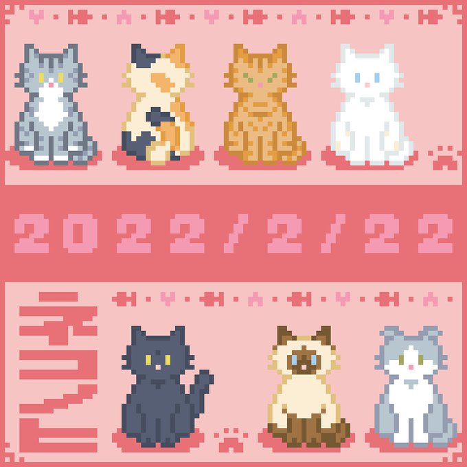 #引用RTで絵をあげて5人指名してバトンでお気に入りの絵を載せる 白桃@風景さんよりいただきました、ありがとうございます!わぁい! それぞれ毛色が異なるドット絵ですが、まとまりのある配色にできてどれも気に入っています。 twitter.com/iblvupV/status…
