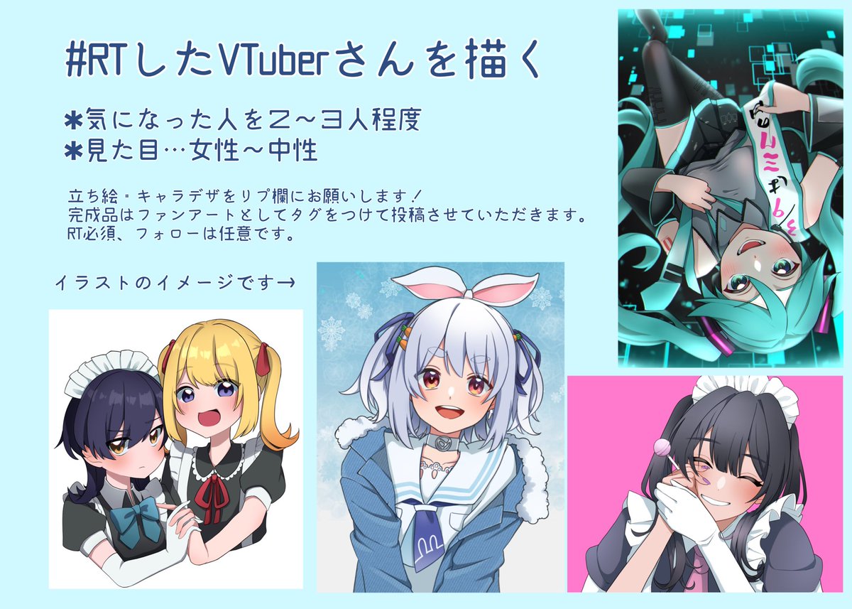 #RTしたVtuberさんを描く #RTしたVTuberを描く ぜひ描かせてください🥺✨ RT+リプ欄に立ち絵などの貼り付けをお願いします! ※著作権は放棄してません ※ご本人様のみ使用可