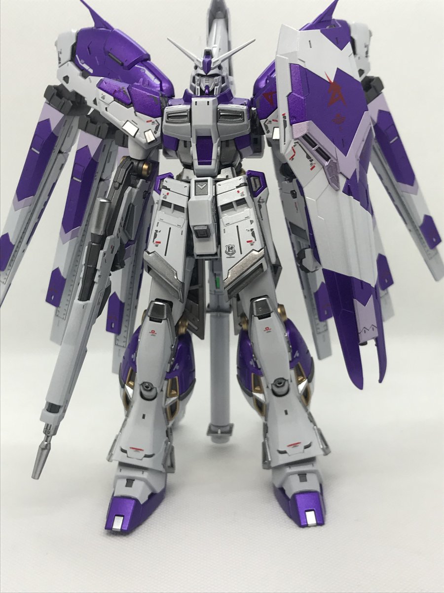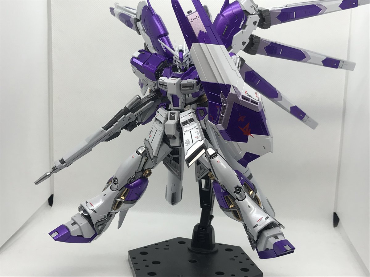 RGハイニューガンダム、完成しました 製作期間は約3週間ほどです 初期デザイン風の紫主体で全面メタリック&パール塗装に手仕上げました 青い所は初期を意識し紫にしましたが細かい配色はリニューアル版を踏襲してます #ガンプラ好きと繋がりたい #ガンプラ #ガンプラの画像貼るとRTされると聞いて