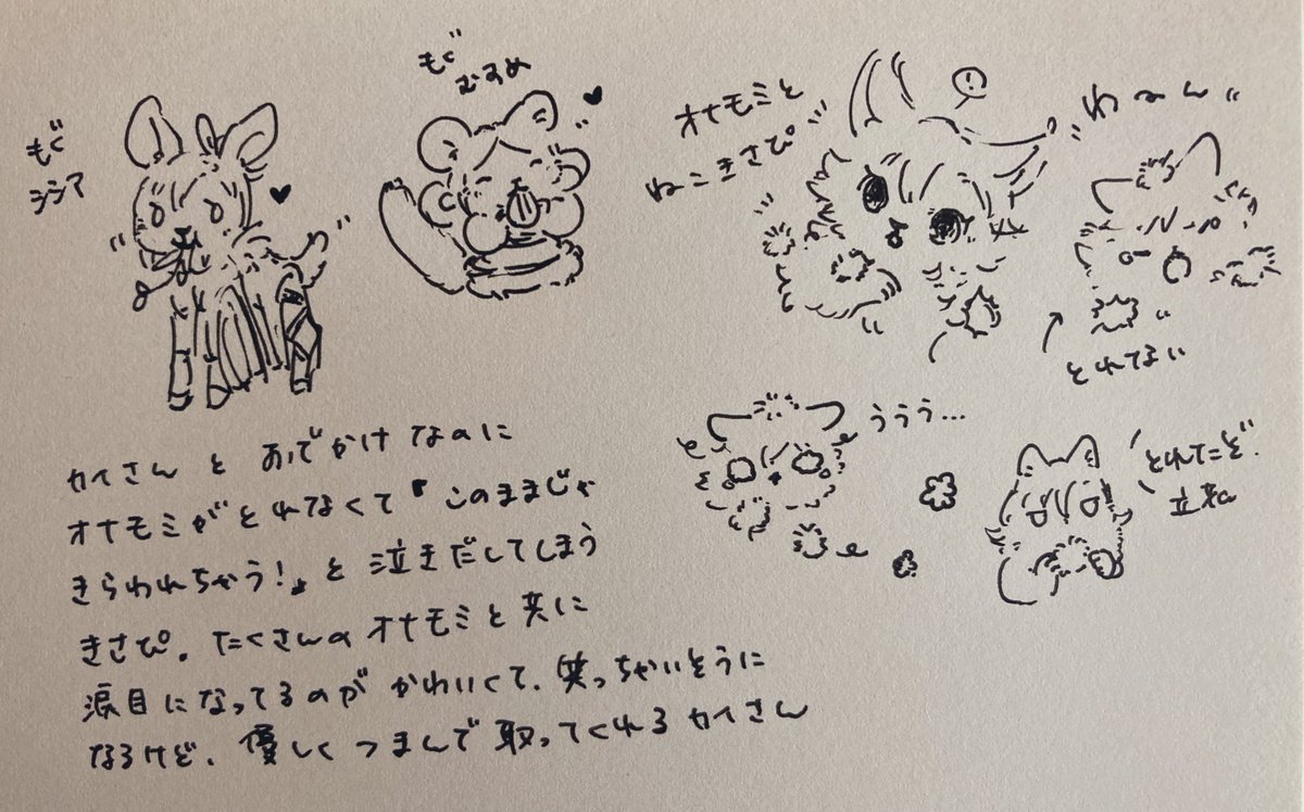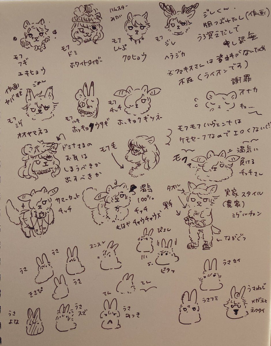 これは昨日仕事が暇すぎて落書きしてたやつと、希佐ちゃんの公演キャラの擬獣化について考えてたメモ