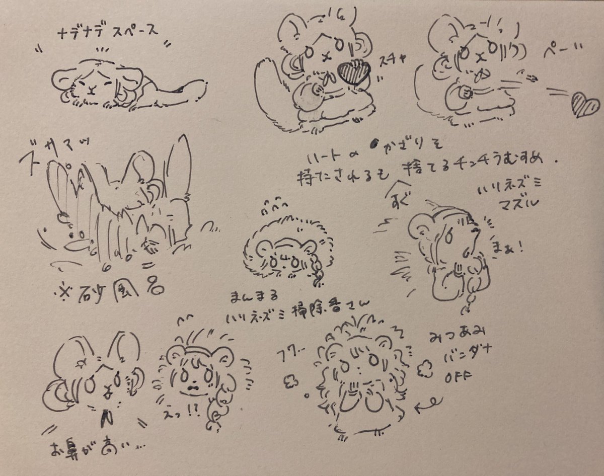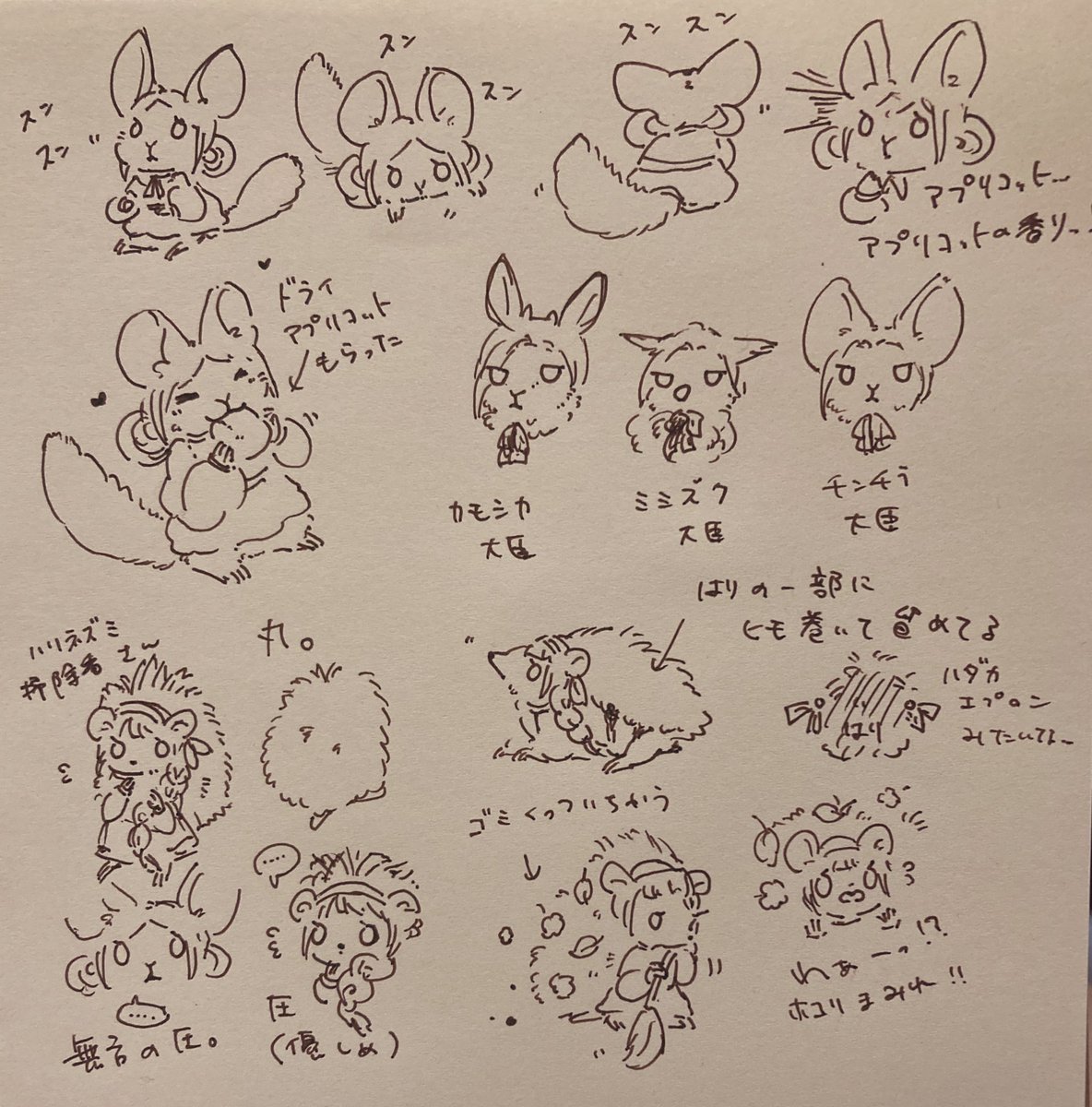 本日の落書き ねこカイさん ヤギイザク わんこ ねこちゃんカンナ ルッキー ポメ向井 いぬスズ チンチラ娘さんとハリネズミ掃除番さん