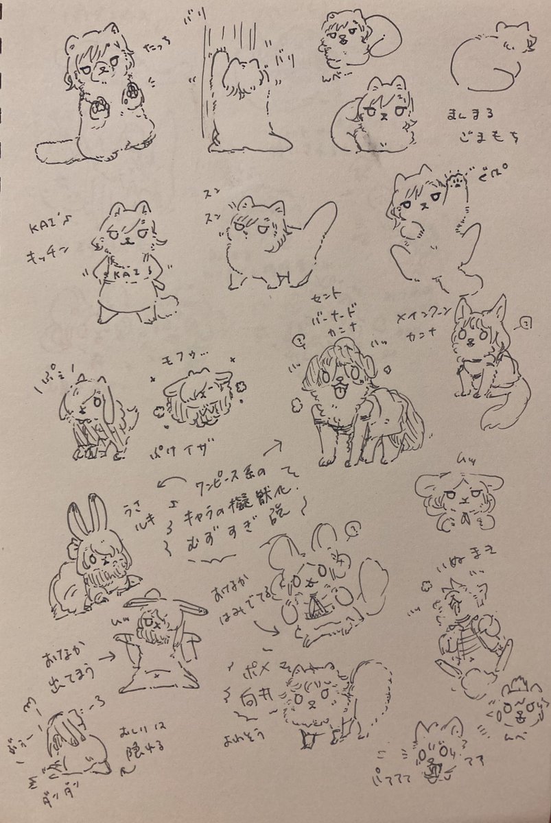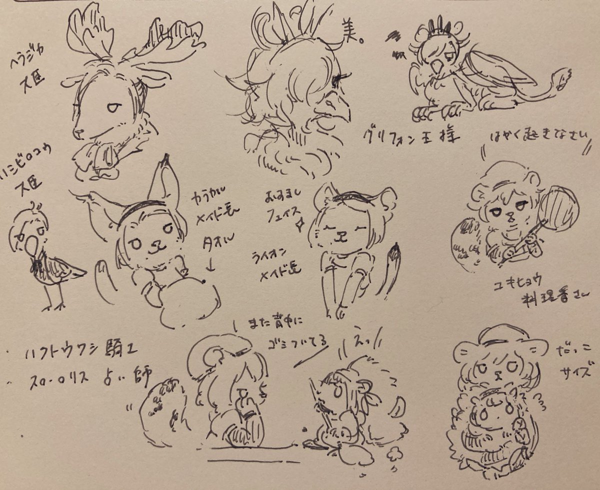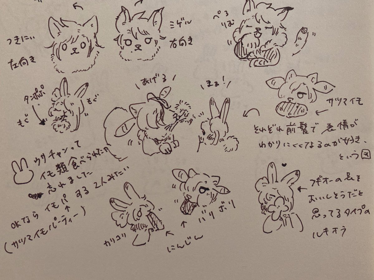1 16 これは昨日仕事が暇すぎて落書きしてたやつと、希佐ちゃんの公演キャラの擬獣化について考えてたメモ 22/08/08 12:35