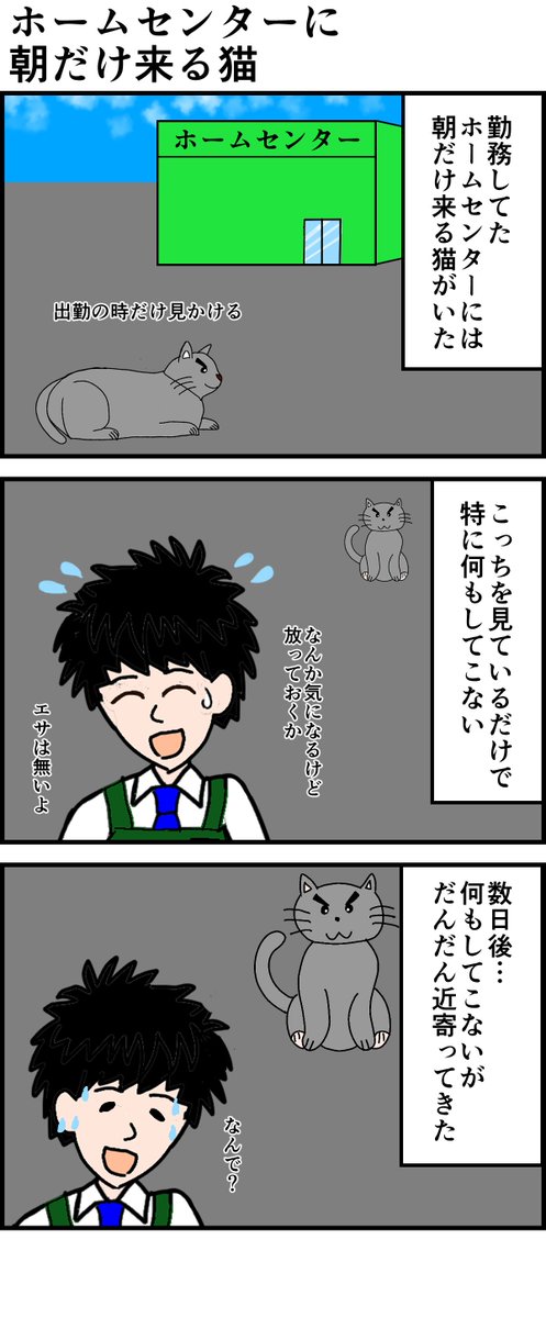 【漫画】ホームセンターに朝だけ来る猫 #ネコ #漫画が読めるハッシュタグ #漫画 #ブログ #絵日記 #日常漫画 #エッセイ #マンガ #イラスト