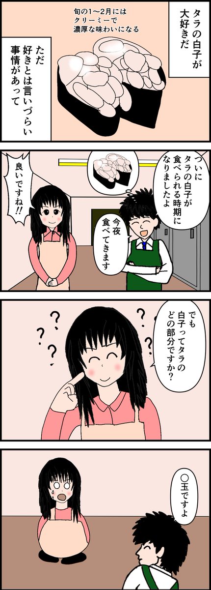 1 2 【過去作漫画】元ホームセンター店員の日々 「タラの白子が好き」と言いづらい理由 #漫画が読めるハッシュタグ #エッセイ漫画 23/03/28 12:01