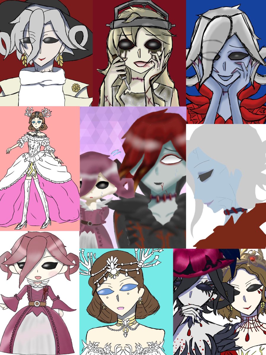 9 43 〖女王のお茶会〗 ラストダンスまでの衣装の集合イラストです(OvO) #第五人格イラスト #血の女王 20/05/27 20:17