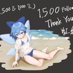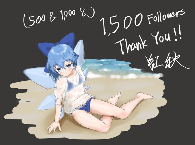 フォロワー1500人突破! ありがとうございます!!! (500人と1000人記念で何もしてなかったのでついでにお祝い) 記念絵は汚薬屋さんに便乗して濡れチルノちゃん! #チルノ #東方 #東方Project