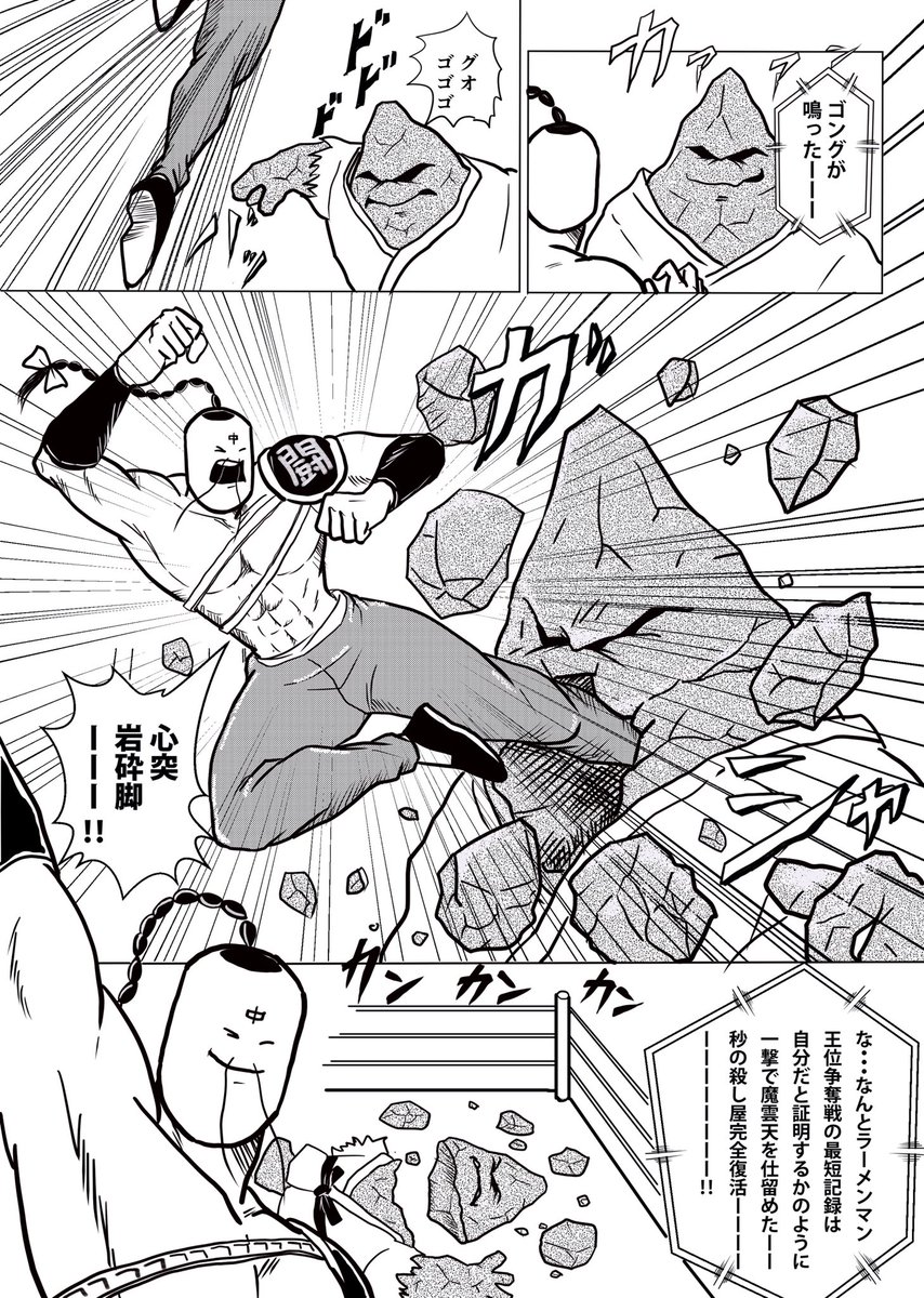 デジタル漫画初めて描いた時のやつです。活躍するラーメンマンが見たくて…自分で描いたれーって。 魔雲天は心突岩砕脚の理想的な犠牲者やと思って描いてたら、レオパルドン系のネタになってしまいました。 #キン肉マンアニメ化