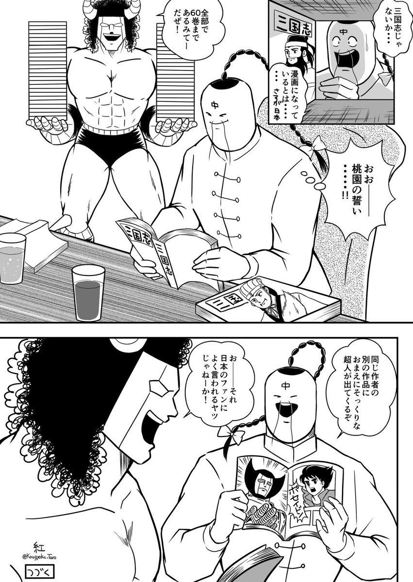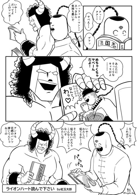 つづき 漫喫を満喫している2000万パワーズ… ライオンハートを発見したバッファローマンと マー・ライオンを見て動揺するラーメンマン ※🦁❤️に出てくるネタを一部描いています。TLに流れてくるようなネタではありますが、念のため… twitter.com/kougyoku_taro/…