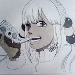 Did this during Calli's Bizarre Karaoke, I messed up the inking in the lips and even tho it gave the drawing a more Jojo-ish style, it was enough to make me doubt about posting it, still did it anyways hehe #callillust#bizarrecallioke