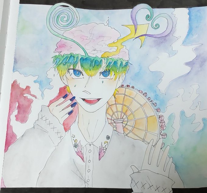 0 3 #イラスト #水彩画 できたー!!!!中3の頃の文化祭イラストのリメイクです! 22/03/19 19:21