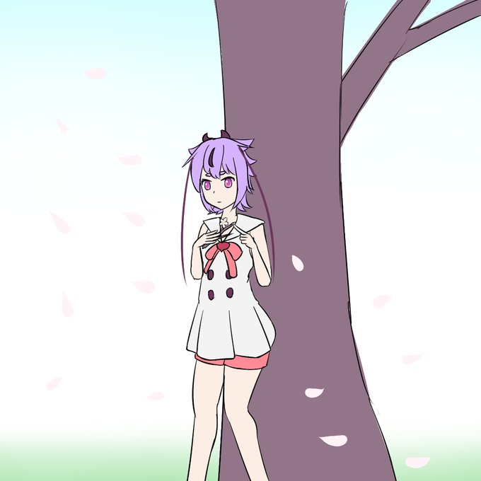 8 13 #鳴花ヒメ・ミコト版ワンドロワンライ 桜の木と落ちた枝をいじいじしているミコトチャン 23/03/18 23:04