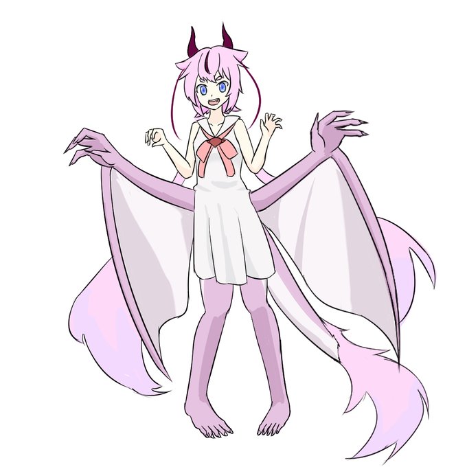 #鳴花ヒメ・ミコト版ワンドロワンライ 手付きの翼としっぽが生えたヒメちゃん(ドラゴン系のつもり 24分オーバー)