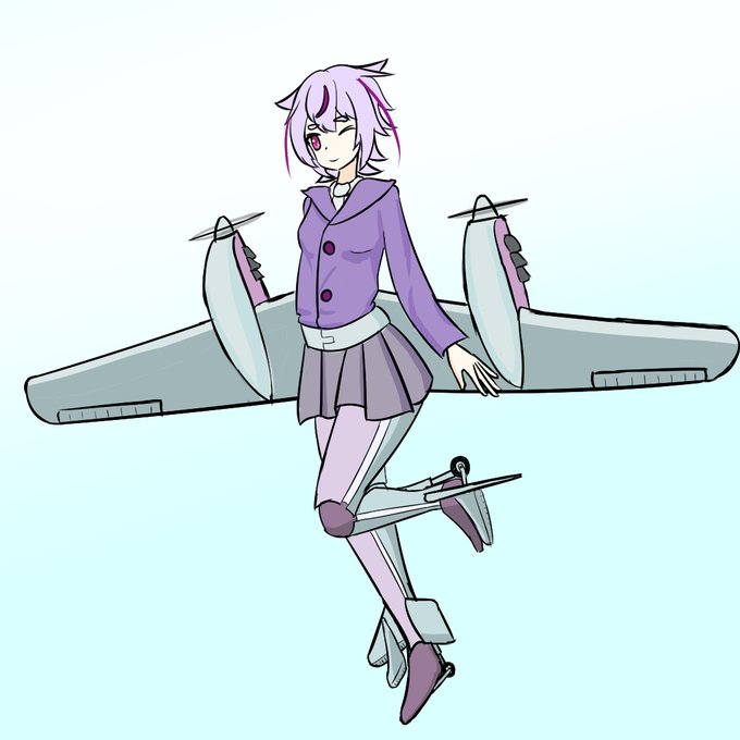 #鳴花ヒメ・ミコト版ワンドロワンライ 双発プロペラ装備なミコトちゃん(10分オーバー) 垂直尾翼的なものを最後に思い出して書き足した ペラ巻き込まれ防止のためみつあみは無し