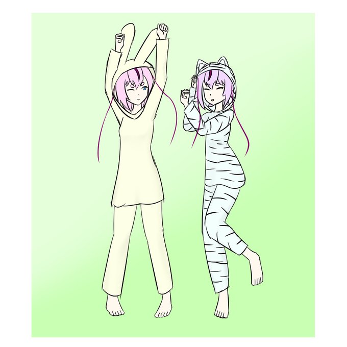 #鳴花ヒメ・ミコト版ワンドロワンライ アニマルパジャマヒメミコ