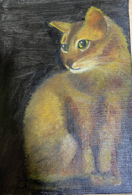 久しぶりに油絵で猫描きました🐱 #絵描きさんと繋がりたい #猫がいる幸せ