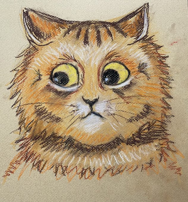 イギリスの画家ルイス・ウェインの絵をパステルで描きました😊 #ルイス・ウェイン
