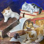 3 5 フランスの画家アルフレッド・アーサー・ブルネル・デ・ヌヴィルの「猫の家族」をパステルで描きました😆✨ #パステル #絵描きさんとつながりたい 23/03/19 19:56