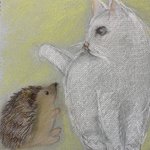 4 52 パステルでハリネズミとネコ描きました🦔🐱 うちのあんずちゃんと小太郎くんです💓 #絵描きさんと繋がりたい #パステル画 23/03/03 18:41