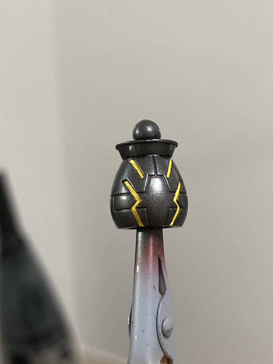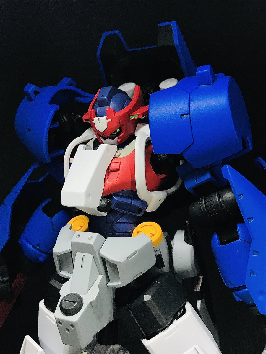 マックナイフ•ケンプファー ざましさんとのコラボ企画で互いの愛機をミキシング! 今回マックナイフ量産機をベースに仕上げました! 基本色はプリズムブルーブラックを使用 マックナイフっぽく量産機のイエローを取り入れました✨ 武装 ショットガン×2 ビームサーベル(左腕) ↓続く↓ #ガンプラ