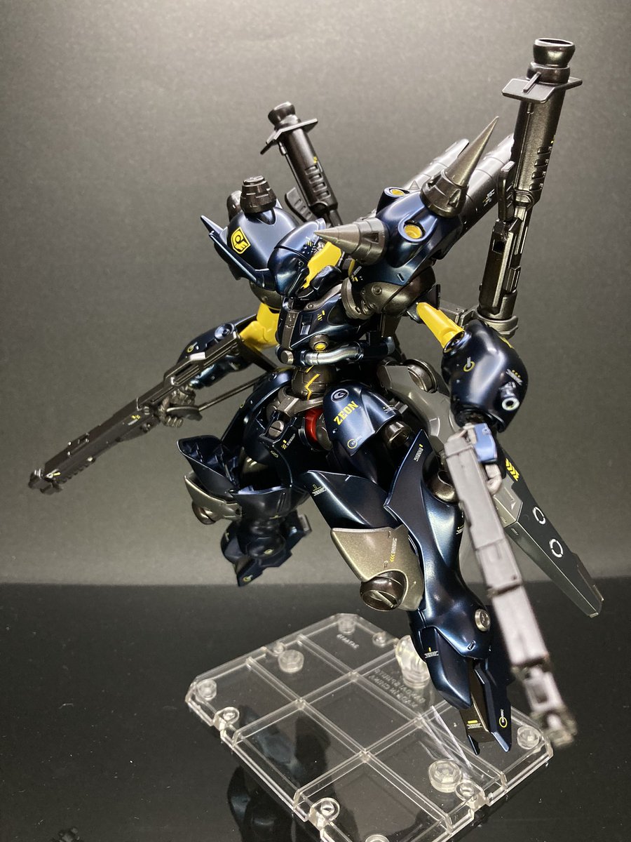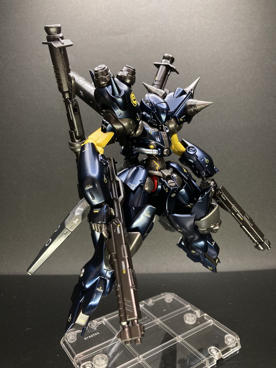796 2719 マックナイフ•ケンプファー ざましさんとのコラボ企画で互いの愛機をミキシング! 今回マックナイフ量産機をベースに仕上げました! 基本色はプリズムブルーブラックを使用 マックナイフっぽく量産機のイエローを取り入れました✨ 武装 ショットガン×2 ビームサーベル(左腕) ↓続く↓ #ガンプラ 21/09/12 20:00