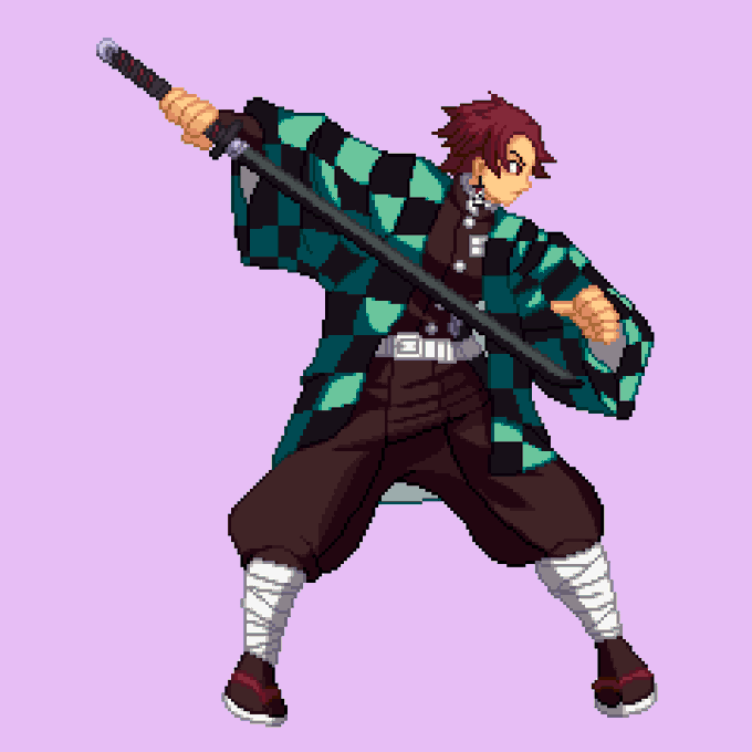 Commission for @umana_luis 👍He asked to make 4 characters from #KimetsunoYaiba :00 #pixelart #ドット絵 #FGC #GuiltyGear #tanjirokamado