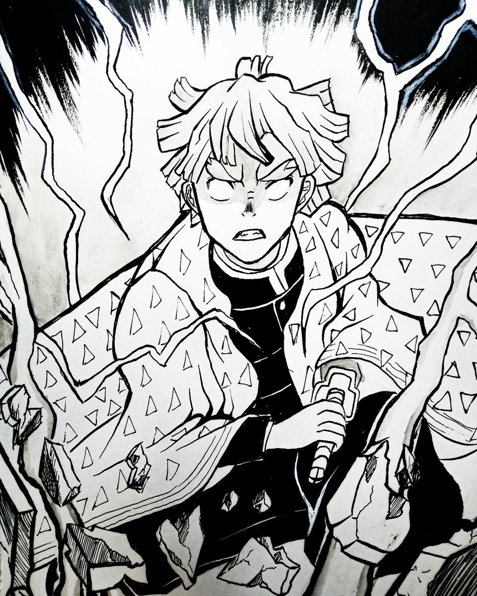 Inktober day 15 - Zenitsu from Kimetsu no yaiba youtu.be/U4b8bpur_ok #art #inktober #inktober2022 #traditionalart #drawing