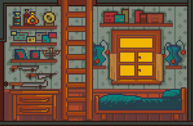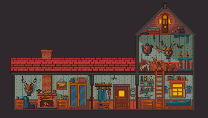 Hunting lodge 🐻🐺🦊🐗🐯 #pixelart #ドット絵