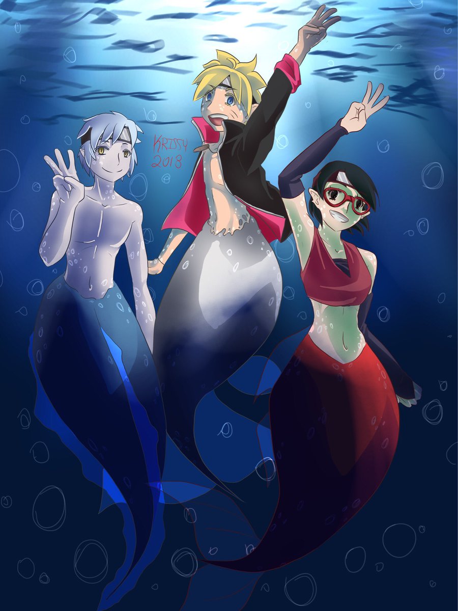 Mermay Day 9 with Boruto and friends... yes, I do like this show unironically #mermay #mermay2018 #boruto #BorutoNarutonextgenerations #sarada #mitsuki #digitalart