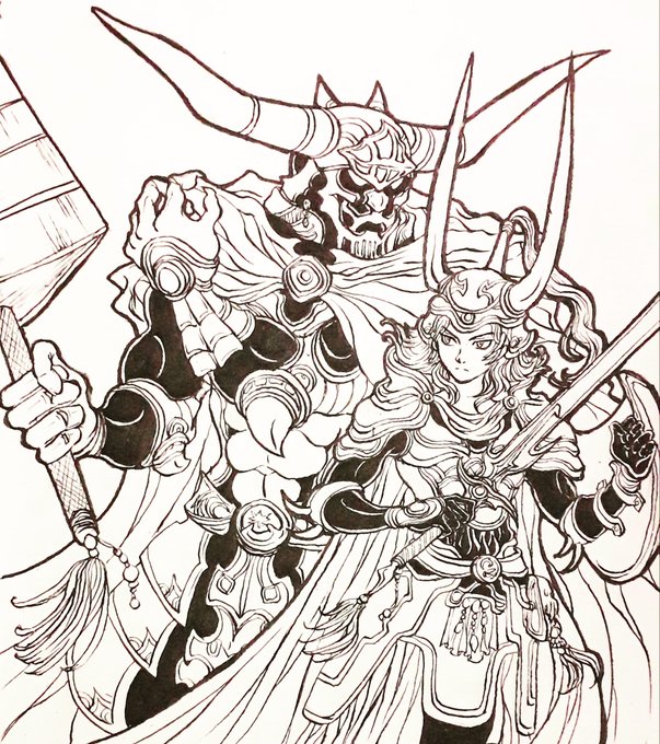 On enchaîne avec le jour 9 😁😘! Le thème était pas évident mais avec du ff c'est toujours le kiff 😎! #inktoberday9 #inktober2020 #throw #fanart #dissidia #finalfantasy #finalfantasy4 #kainhighwind #cecilharvey #fight #armor #fantasy #traditionnalart #fabercastell #drawing