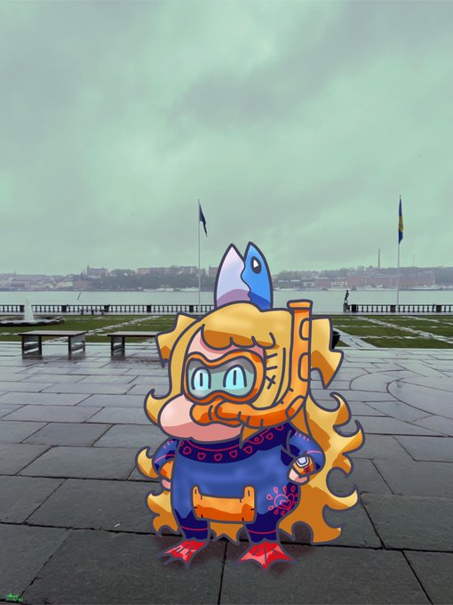 Rain means snorkeling-chama in Stockholms stadshus. #はあとart