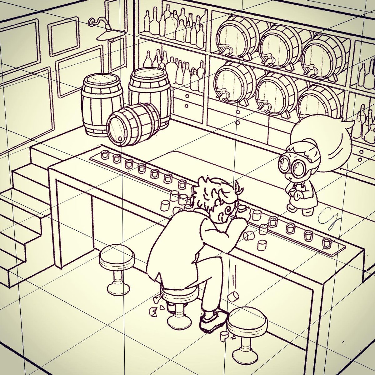 A hundred shots. Each one contains a different game clip highlight. Once you drink it, you will be able to see a highlight, but the side effects are horrible. At best hangover, at worst lose your life. Do you want to back out? Day 10-11 #inktober2021