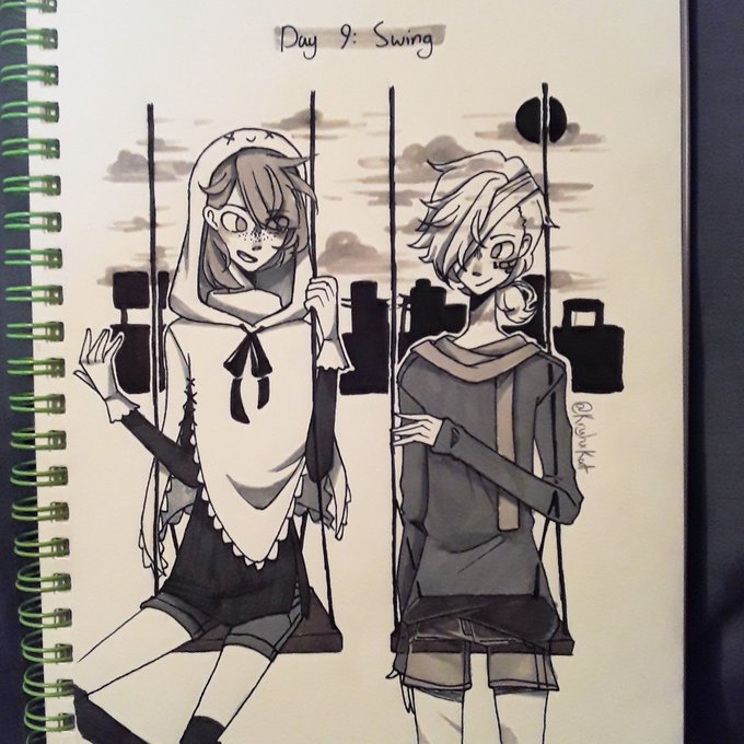 #inktober day 9: swing a kinda concept thing ill probably parallel in other drawings girl on the right is meant to look like a ghost btw #inktober2019 #art #artist #artistsontwitter #traditionalart