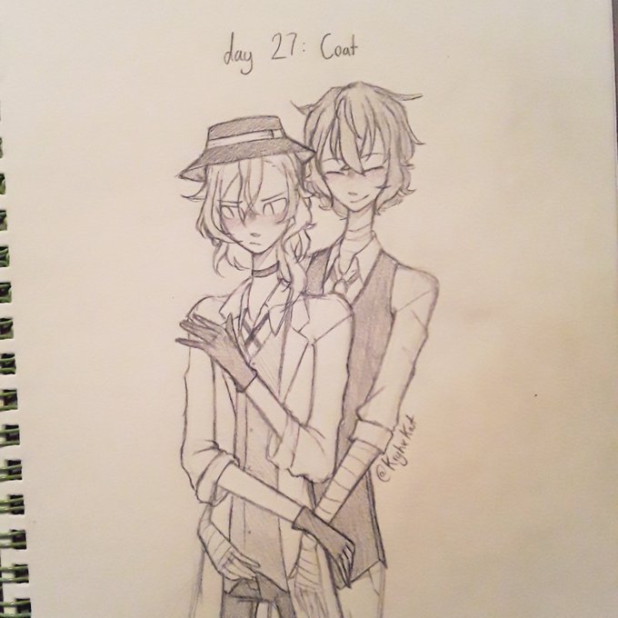 #inktober day 27 but its not inked bc my arm really hurts its also day 28 when im posting this #art #traditionalart #soukoku #BSD #bungoustraydogs
