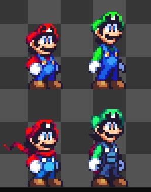 mario bros (mainline) and mario bros (my take on them for my little AU for my dream mario fangame that I wont make until I become a better programmer LMAO) #pixelart #SuperMario