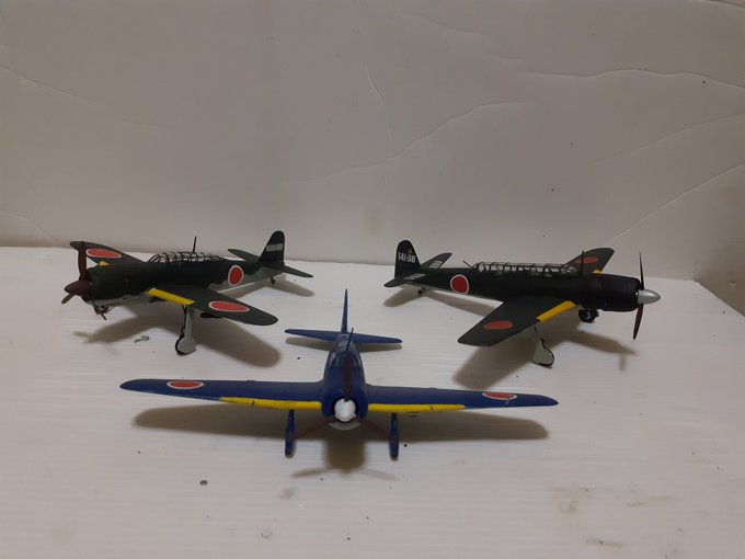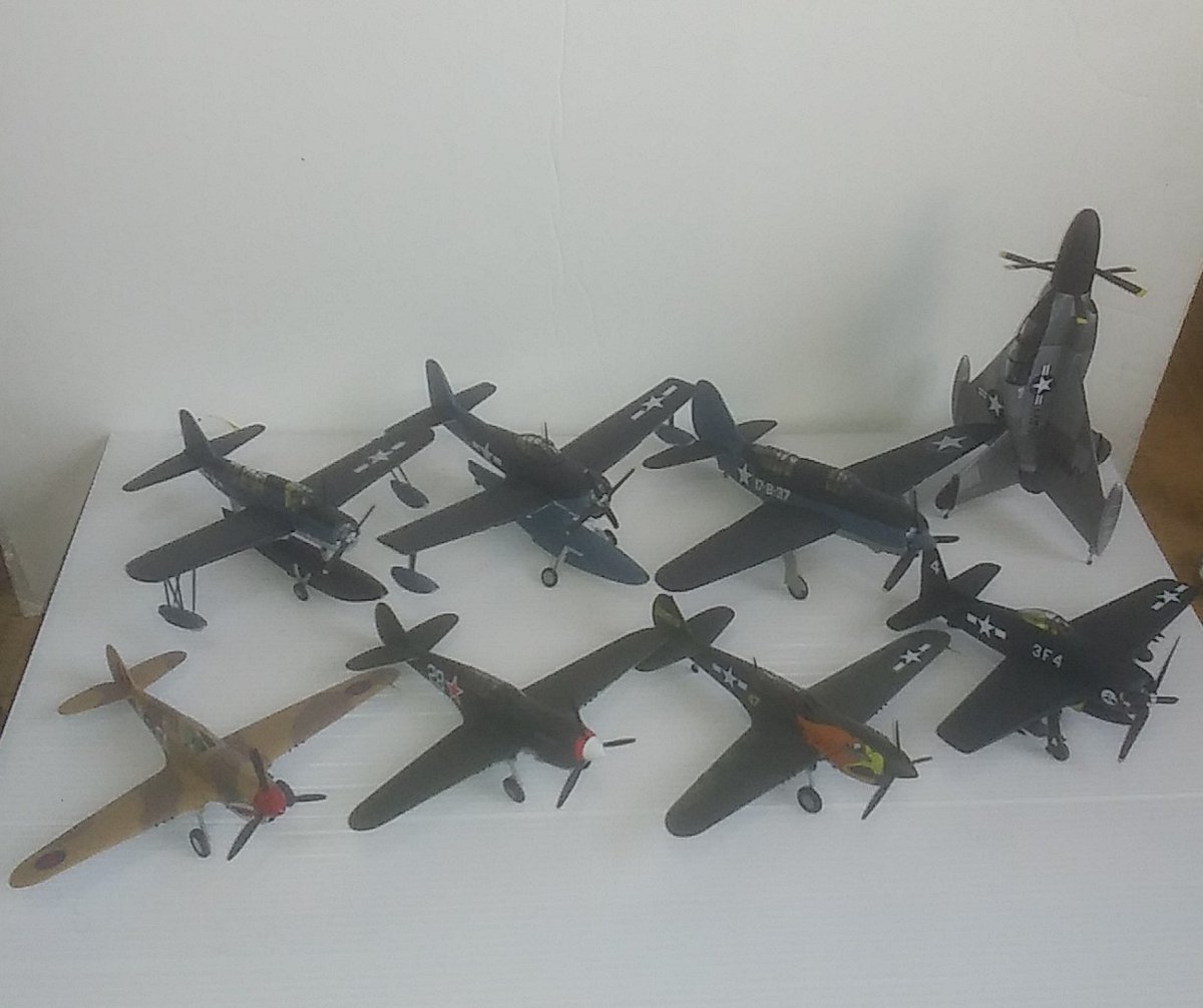 #今年作ったプラモ晒そうぜ まずは1/72飛行機モノ(1個だけたまごひこーきだけど)31個 複数同時製作(バッカニア、スカイレイ、流星、P40、ミグ&ラグ、飛燕)しまくったせいか、今までにないハイペースで作ってたな😂